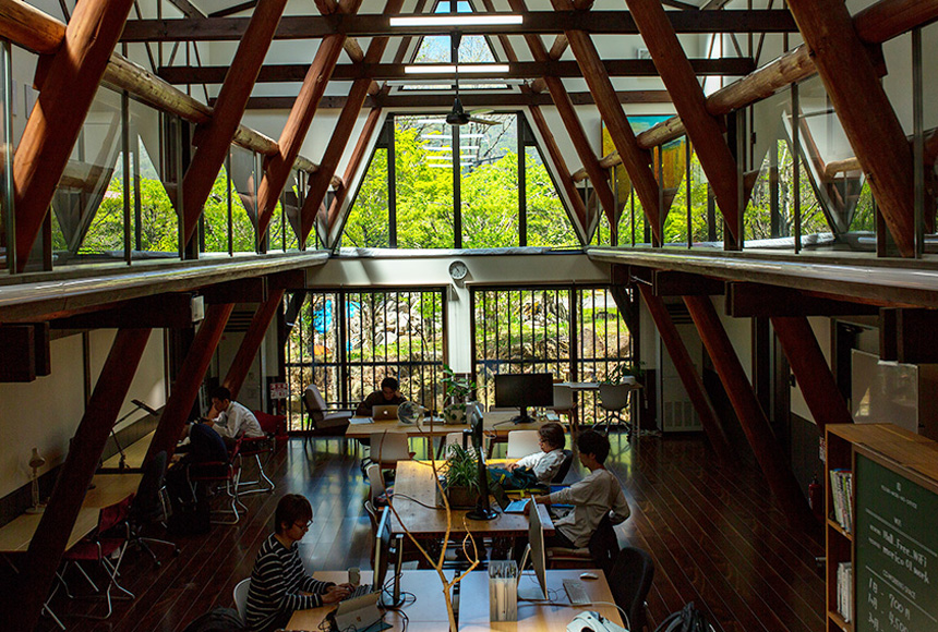 ランチの後は仕事タイム。パソコンとネットワークさえあれば、長野にいてもいつもと同じように仕事ができます。コワーキングスペースでは他の利用者との交流や、新たな人脈づくりが期待できます。
